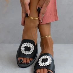 Φτηνός 😉 Προϋπολογισμός 🔥 The Fashion Project Πέδιλα Flat με σχέδιο φίδι – Μαύρο 🛒 ❤️