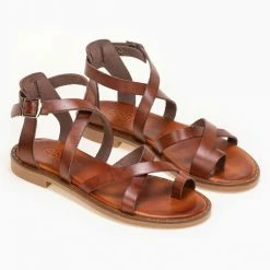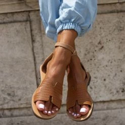 Best Pirce ⭐ Ολοκαίνουργιο ❤️ Πέδιλα δερμάτινα Estil φλατ με χιαστί λουράκια – Ταμπά 👏 🤩