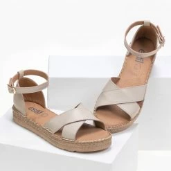 Best Pirce ⭐ Προώθηση 🔔 Σανδάλια Estil δερμάτινα με χιαστί φάσες – Μπεζ 😀 😉