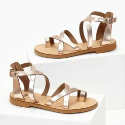 Best Pirce ✔️ Προϋπολογισμός 👍 Πέδιλα TFP Flat δερμάτινα με χιαστί δέσιμο – Χαλκός 👏 ⭐