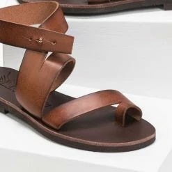 Συμφωνίες 😀 Τοπ 10 💯 IRIS Πέδιλα δερμάτινα ίσια με ιδιαίτερο κούμπωμα – Καφέ 🔥 🔔