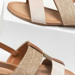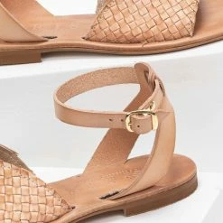 Φτηνός 😍 Κουπόνι 👍 IRIS Πέδιλα ίσια δερμάτινα με πλεκτό Pattern – Φυσικό 🔥 🥰