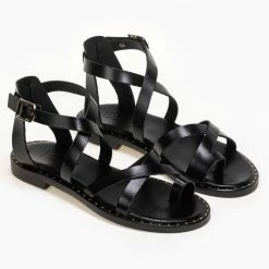 ΧΟΝΔΡΙΚΟ ΕΜΠΟΡΙΟ 🔥 Προϋπολογισμός ⭐ Σανδάλια δερμάτινα TFP με χιαστί δέσιμο – Μαύρο 🎁 💯
