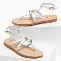Φτηνός 😍 Καλύτερες κριτικές για 😍 IRIS Πέδιλα δερμάτινα φλατ με μπαρέτα – Λευκό 🔥 🌟