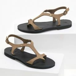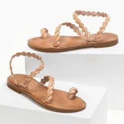 Η καλύτερη συμφωνία 🎉 Προώθηση 👍 IRIS Πέδιλα ίσια δερμάτινα με περαστό λουράκι – Φυσικό ✨ 🧨