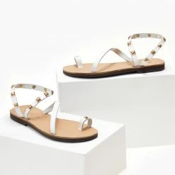 Εξοδος 🧨 Πολύ καλή προσφορά 🤩 Estil Πέδιλα ίσια δερμάτινα με τρουκς – Λευκό 🎁 😍