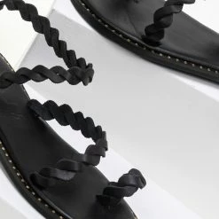 Ολοκαίνουργιο 🛒 Προώθηση 👍 IRIS Πέδιλα ίσια δερμάτινα με περαστό λουράκι – Μαύρο 🔔 😍