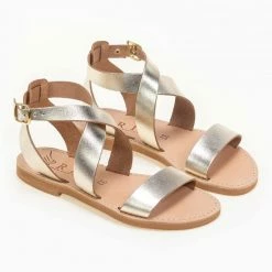 Νέος 🧨 Κουπόνι 🛒 IRIS Πέδιλα ίσια χειροποίητα δερμάτινα – Χρυσό 👍 🧨