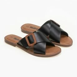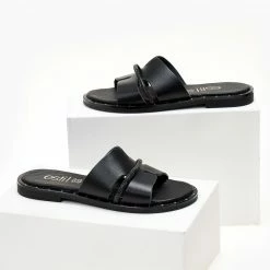 Καλύτερη πώληση 😍 Νέος 🤩 Estil δερμάτινα σανδάλια με κοψίματα στη φάσα – Μαύρο 😀 ❤️