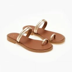 Καλύτερη πώληση ❤️ Προώθηση 🌟 Σανδάλια δερμάτινα TFP με διπλό λουράκι – Χρυσό 😀 🎁