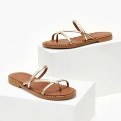 Νέος ⌛ Πολύ καλή προσφορά 🎉 Σανδάλια δερμάτινα Estil με περαστές φάσες – Χρυσό ⌛ 🎉