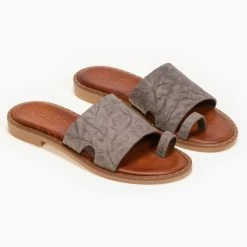 Best Pirce 👍 Εξοδος 👍 Σανδάλια δερμάτινα Estil με τσαλακωτό δέρμα – Τάουπε 🧨 😀