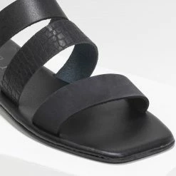 Best Pirce 👍 Προώθηση 🔔 IRIS Σανδάλια καρέ δερμάτινα με φάσα κροκό – Μαύρο ✔️ ✨