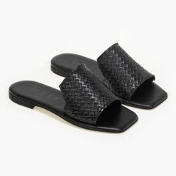 Συμφωνίες 😀 Προϋπολογισμός 👏 IRIS Σανδάλια δερμάτινα καρέ με ανάγλυφο πλεκτό σχέδιο – Μαύρο 🛒 😀