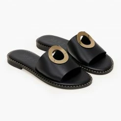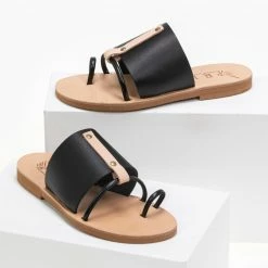 Συμφωνίες 🌟 Συμφωνίες 😉 Σανδάλια δερμάτινα IRIS με κύκλο – Μαύρο ✨ 🌟