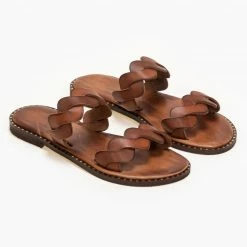 Συμφωνίες 👍 Ολοκαίνουργιο 🤩 IRIS Σανδάλια δερμάτινα με Wavy πλεγμένες φάσες – Καφέ 😍 ✨