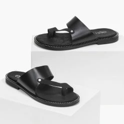 Συμφωνίες 🔥 Φτηνός 👍 Σανδάλια Estil δερμάτινα με φάσα και δάκτυλο – Μαύρο 🔔 🔥