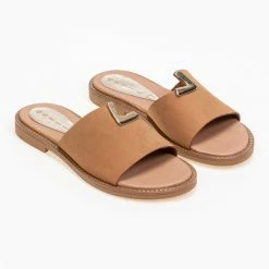 Συμφωνίες ✨ ΧΟΝΔΡΙΚΟ ΕΜΠΟΡΙΟ 🎁 Σανδάλια Estil δερμάτινα με μέταλλο – Κάμελ 🎉 👏