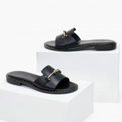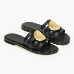 Τοπ 10 😀 Flash Sale 👍 Σανδάλια TFP δερμάτινα με μεταλλικό διακοσμητικό – Μαύρο 🧨 ⌛