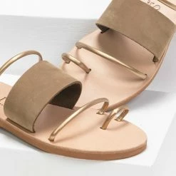 Τοπ 10 😍 Τοπ 10 🤩 IRIS Σανδάλια δερμάτινα με μεταλλικό χρώμα στα λουράκια – Λαδί 😀 🥰