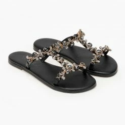 Τοπ 10 😍 Best Pirce 💯 Σανδάλια δερμάτινα IRIS με πέτρες – Μαύρο 💯 🎉