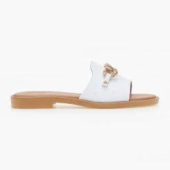 Flash Sale 😉 Πολύ καλή προσφορά 😉 Σανδάλια δερμάτινα Estil με αλυσίδα – Λευκό 😀 🔥