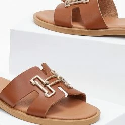 Best Pirce 🧨 Πολύ καλή προσφορά 💯 Σανδάλια Estil δερμάτινα με μεταλλική αγκράφα – Ταμπά 🤩 ✨