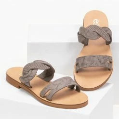 Flash Sale 🔔 Προώθηση 🧨 Σανδάλια Estil δερμάτινα με δυο φάσες – Μπεζ ⭐ ⭐