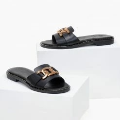 Flash Sale 🤩 Ολοκαίνουργιο 🔔 Σανδάλια δερμάτινα TFP με αλυσίδα στη φάσα – Μαύρο 🎉 ⌛
