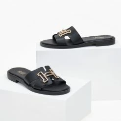 Αγορά 🛒 Το φθηνότερο ⭐ Flatforms δερμάτινα με χιαστί δέσιμο Tfp – Μαύρο 😍 ⭐