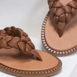 Εκπτωση ⭐ Best Pirce 🌟 Σανδάλια Estil Flat με κοτσίδες – Ταμπά 🛒 🔔