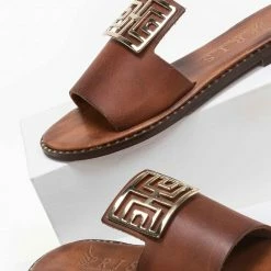 Εξοδος ⭐ Flash Sale 😉 IRIS Σανδάλια δερμάτινα με τετράγωνη αγκράφα – Καφέ 🌟 ✔️