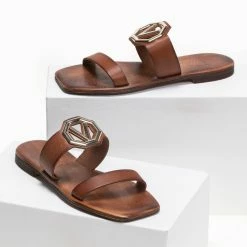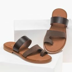 Καλύτερη πώληση ⭐ Εκπτωση 🥰 Σανδάλια Estil δερμάτινα με δυο φάσες – Καφέ 🛒 🤩