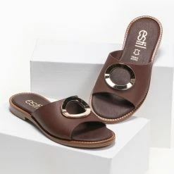 Νέος ✨ Ολοκαίνουργιο 👏 Σανδάλια Estil δερμάτινα με άνοιγμα – Καφέ ⌛ 🔥