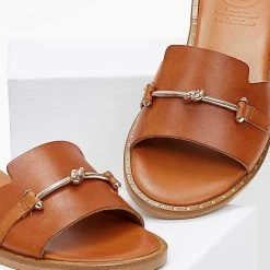 Νέος 👏 Συμφωνίες 👍 IRIS Σανδάλια δερμάτινα καρέ με μεταλλική αγκράφα – Ζαχαρί 🔔 ✔️