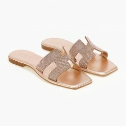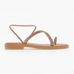 Best Pirce 😉 ΧΟΝΔΡΙΚΟ ΕΜΠΟΡΙΟ 🎁 Σανδάλια δερμάτινα ESTIL με χιαστί Strass λουράκια – Χαλκός 🔥 👏