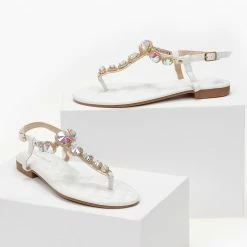 Best Pirce ✔️ Καλύτερη πώληση 🧨 The Fashion Project Πέδιλα φλατ με μεγάλα στρας – Λευκό 🔥 👏