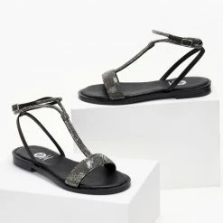 Η καλύτερη συμφωνία 💯 Η καλύτερη συμφωνία 🎉 Flatforms δερμάτινα TFP με Strass λουράκι – Μαύρο 😍 🤩