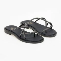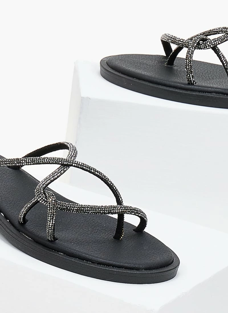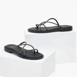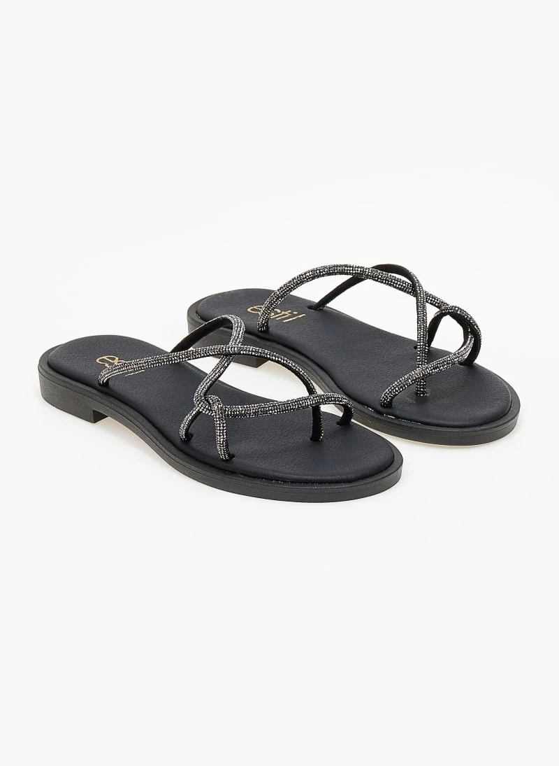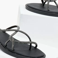 Πολύ καλή προσφορά ⭐ Αγορά 💯 Δερμάτινα σανδάλια Estil με Strass λουράκια – Μαύρο 🎁 🤩