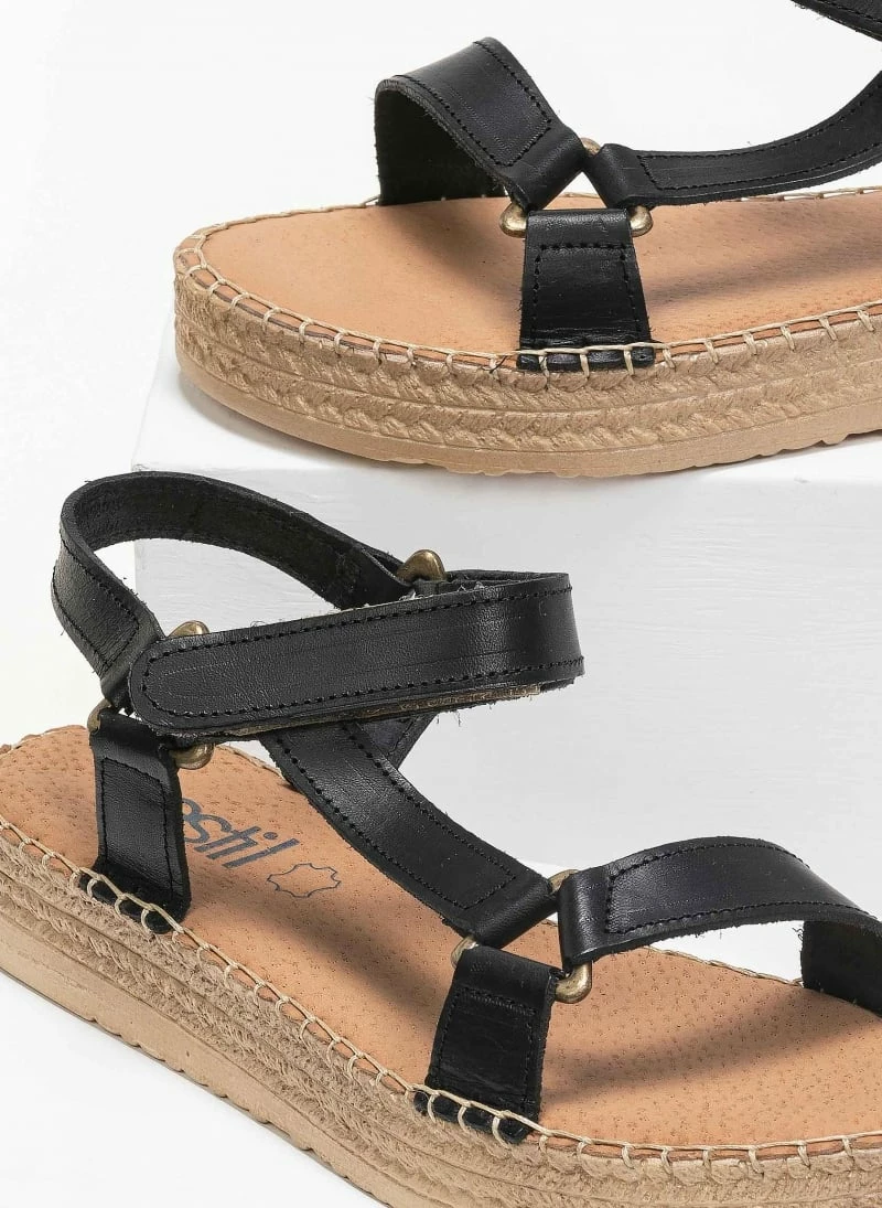 Η καλύτερη συμφωνία 🔔 Αγορά ⭐ Σανδάλια Estil δερμάτινα με ανάγλυφο σχέδιο ψάθα – Ταμπά 💯 🥰