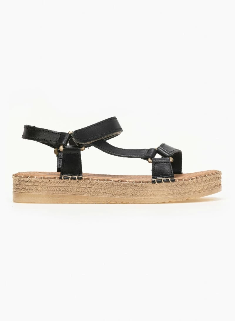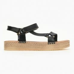 Τοπ 10 ❤️ Πολύ καλή προσφορά 👍 Estil δερμάτινα Flatform πέδιλα με Velcro – Μαύρο 🤩 😍