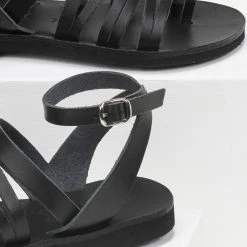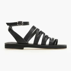 Προϋπολογισμός 💯 Νέος 🌟 Estil δερμάτινα ίσια πέδιλα με λεπτά λουράκια – Μαύρο 💯 ✔️