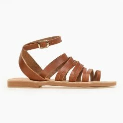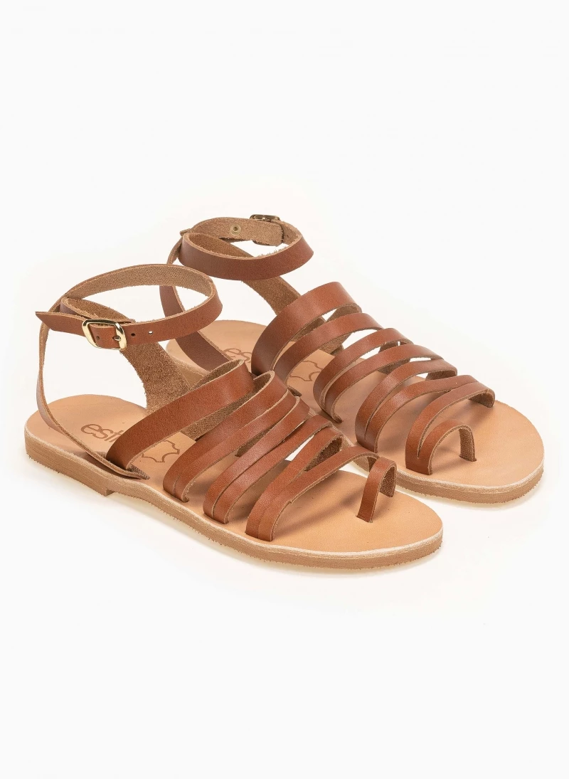 Πολύ καλή προσφορά 🧨 Το φθηνότερο 😍 Estil δερμάτινα ίσια πέδιλα με λεπτά λουράκια – Ταμπά 🛒 🎉