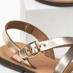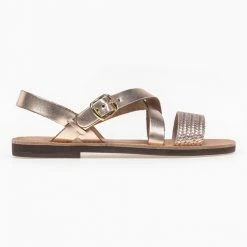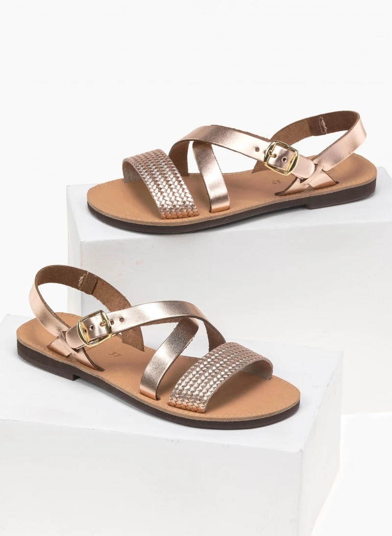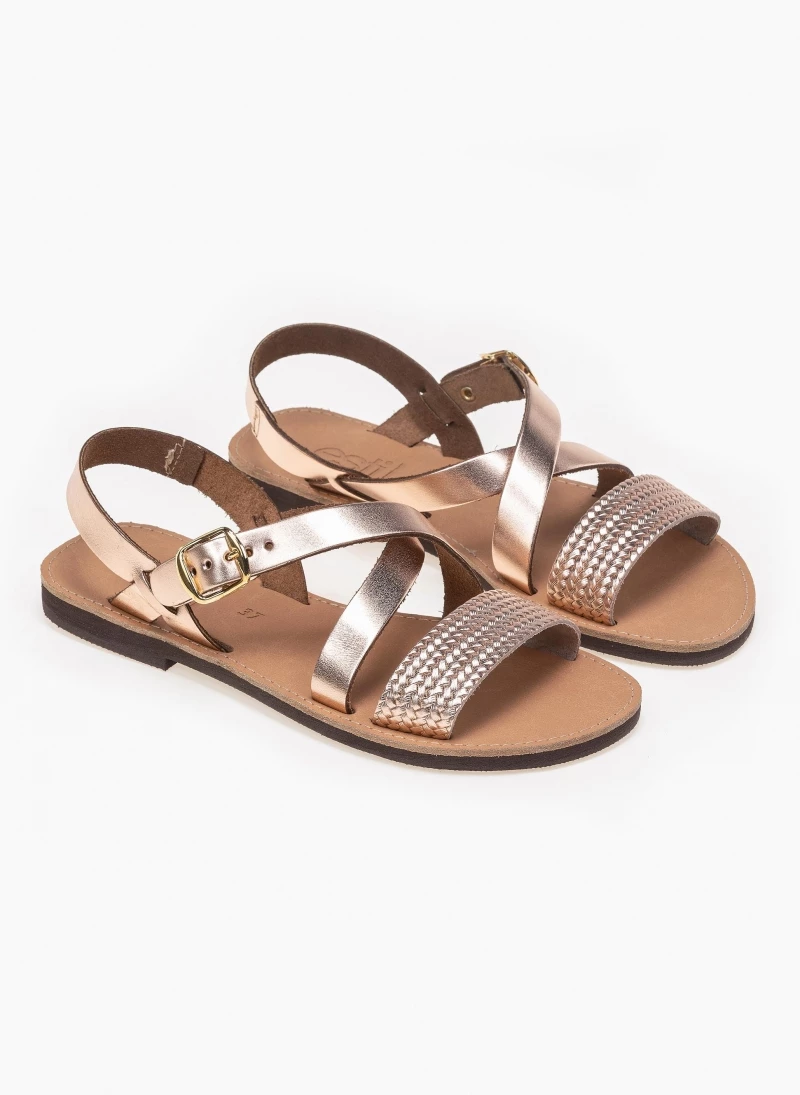 Το φθηνότερο 🤩 Φτηνός 🔔 Σανδάλια Estil δερμάτινα με σχέδιο ψάθα – Χρυσό 🎁 ✨