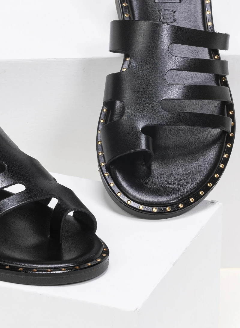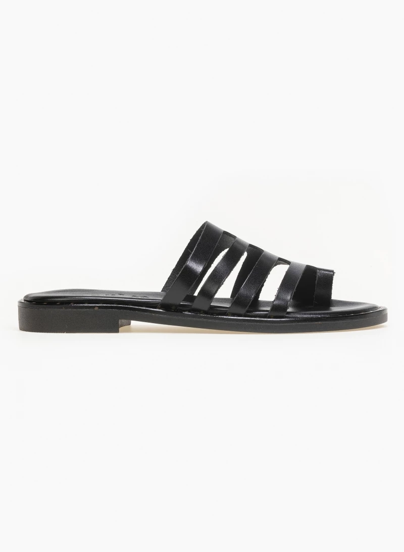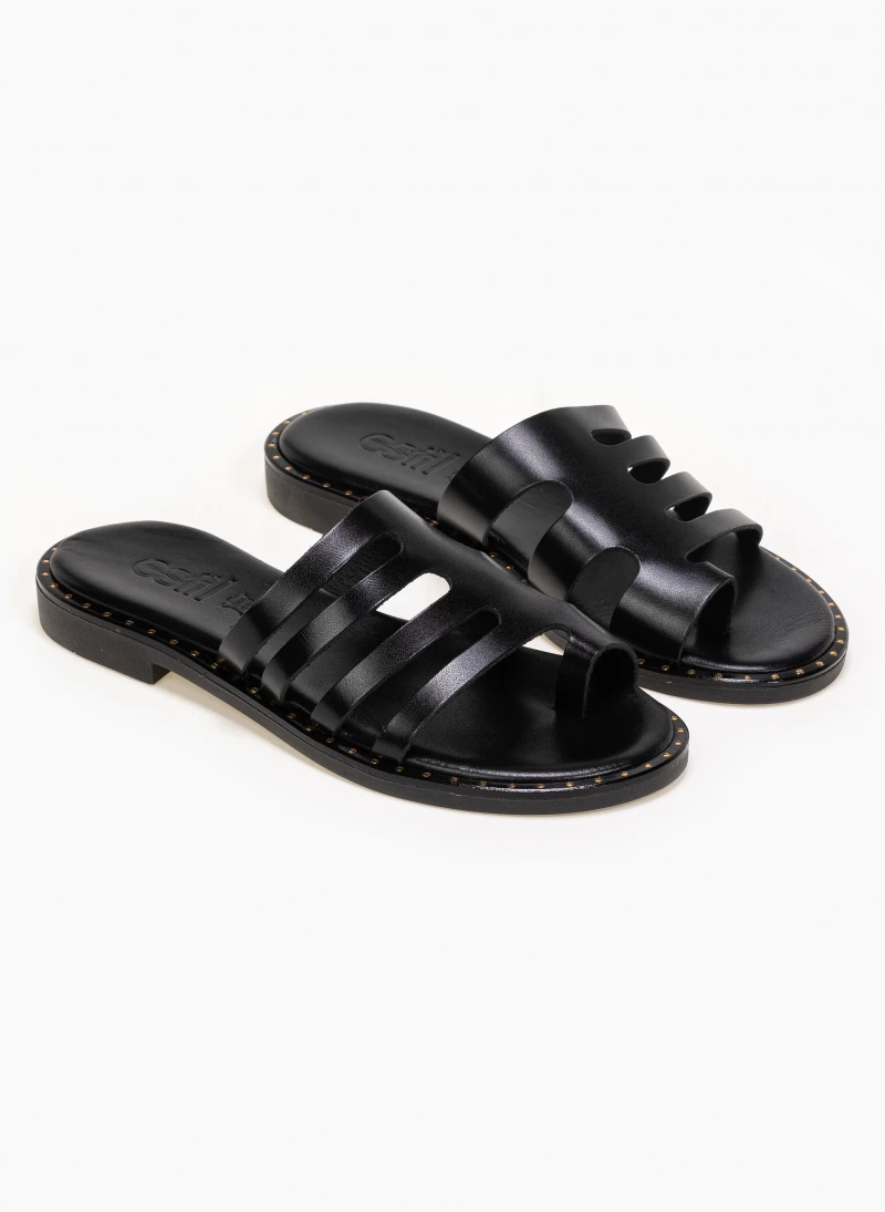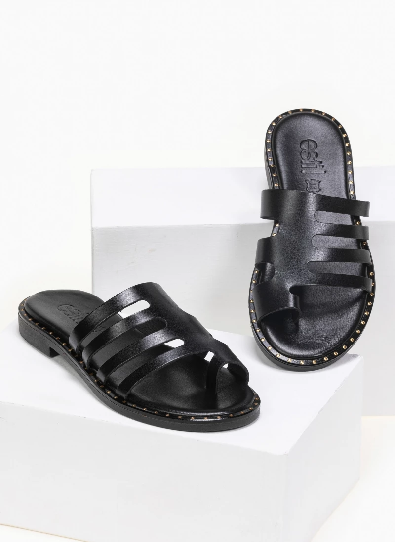 Καλύτερη πώληση 😍 Νέος 🤩 Estil δερμάτινα σανδάλια με κοψίματα στη φάσα – Μαύρο 😀 ❤️
