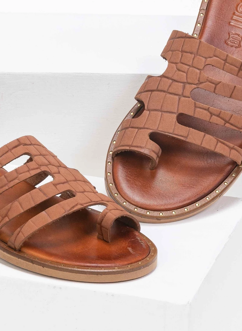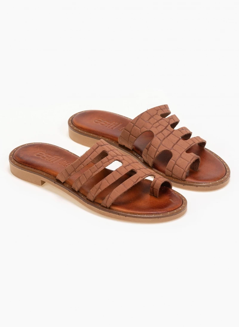 Πολύ καλή προσφορά 🛒 Αγορά 🥰 Σανδάλια Estil δερμάτινα με ανάγλυφο σχέδιο – Χαλκός ⌛ ✨