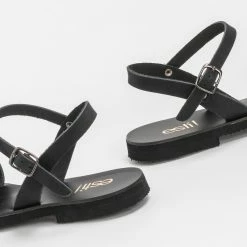 Εξοδος 😉 Αγορά ✨ Estil Flat πέδιλα με φαρδιά φάσα – Μαύρο ✔️ 👏