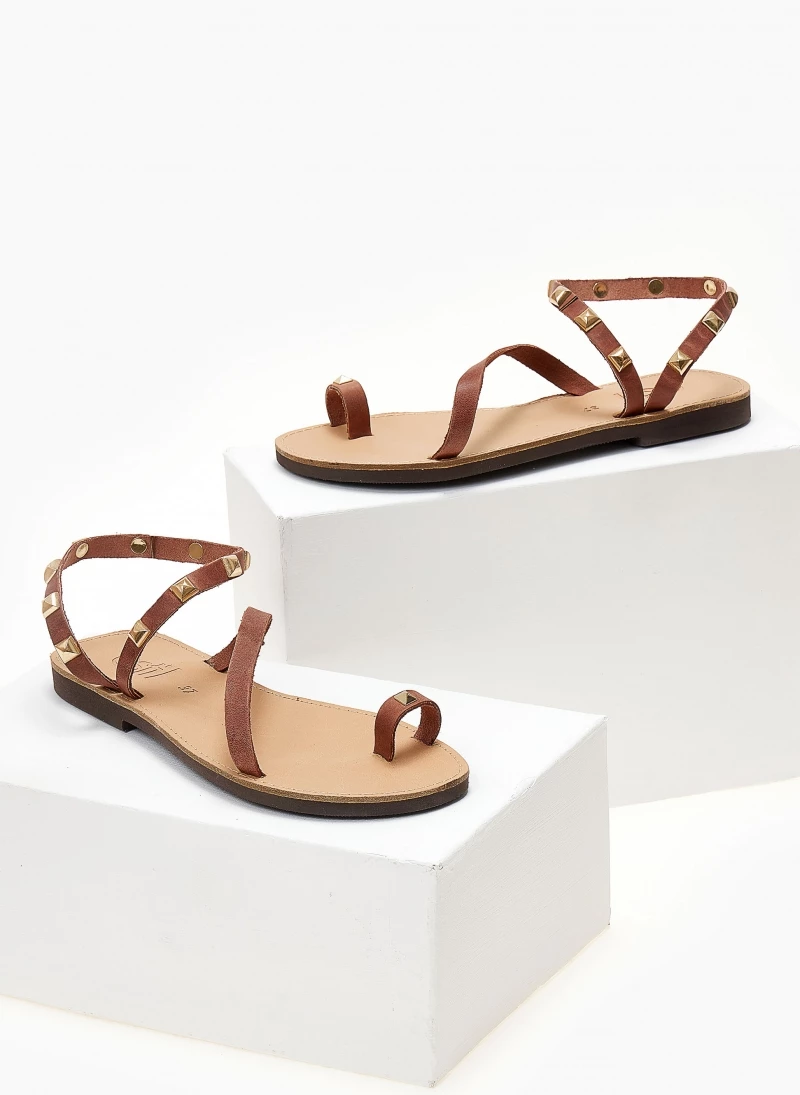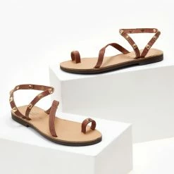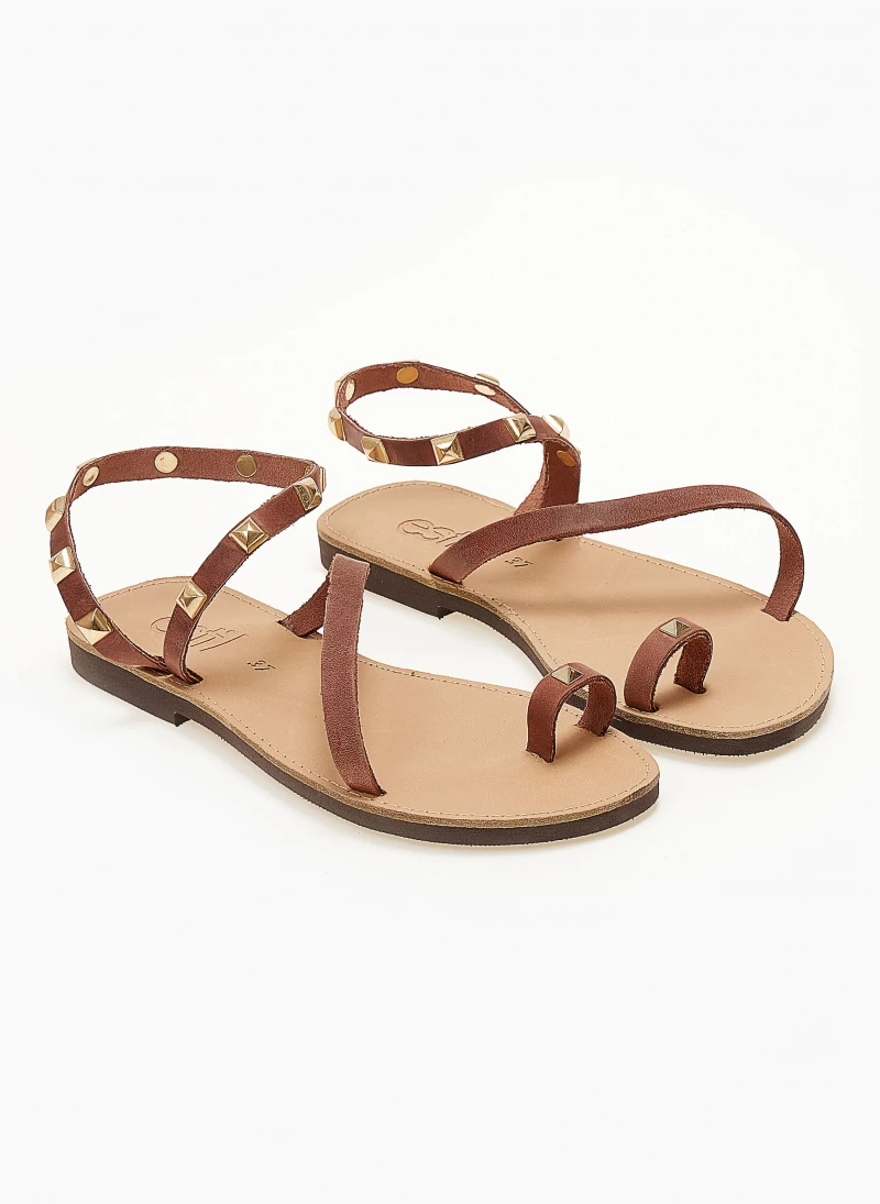 Συμφωνίες ⭐ Καλύτερη πώληση 🎁 Σανδάλια Estil δερμάτινα με περαστή φάσα – Ταμπά ❤️ ✔️