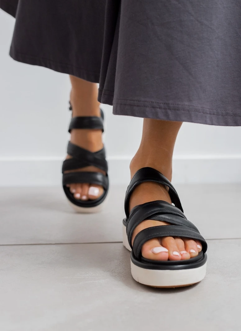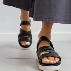 Αγορά 🛒 Το φθηνότερο ⭐ Flatforms δερμάτινα με χιαστί δέσιμο Tfp – Μαύρο 😍 ⭐