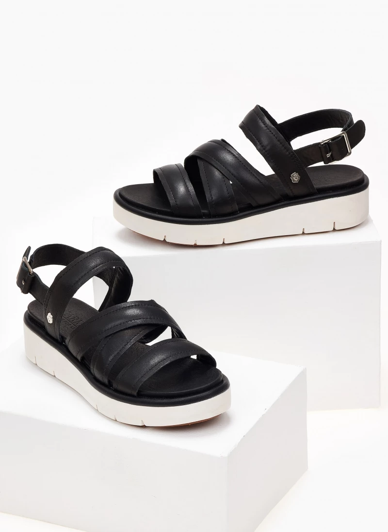 Νέος ⭐ Τοπ 10 ⌛ Flatform δερμάτινα πέδιλα CARMELA 68418 – Μαύρο ❤️ ⭐